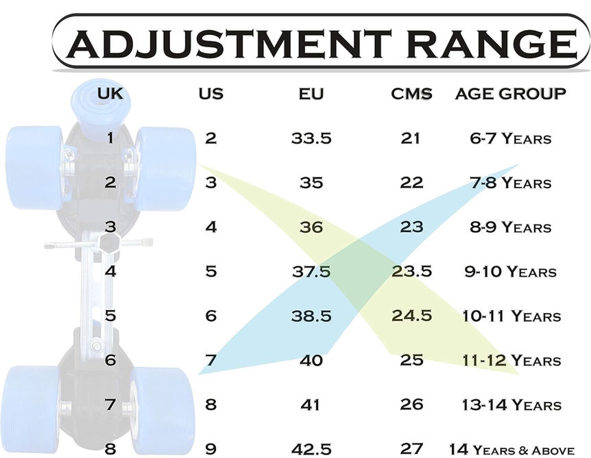 The Adjustable Skate is just the thing to easily glide indoors and outdoors. Discover the joy of skating with Jaspo, Indian Skate Company since 1960 SPECIAL FEATURES Adjustable and light weight senior roller skates with adjustable length from 21 cm to 27 cm Light weight fiber chassis and adjustable in size Weight Handling up to 70 kg. Toe Stopper for great control Fitted with Florescent TPU Wheels Suitable for age group 6-14 years
