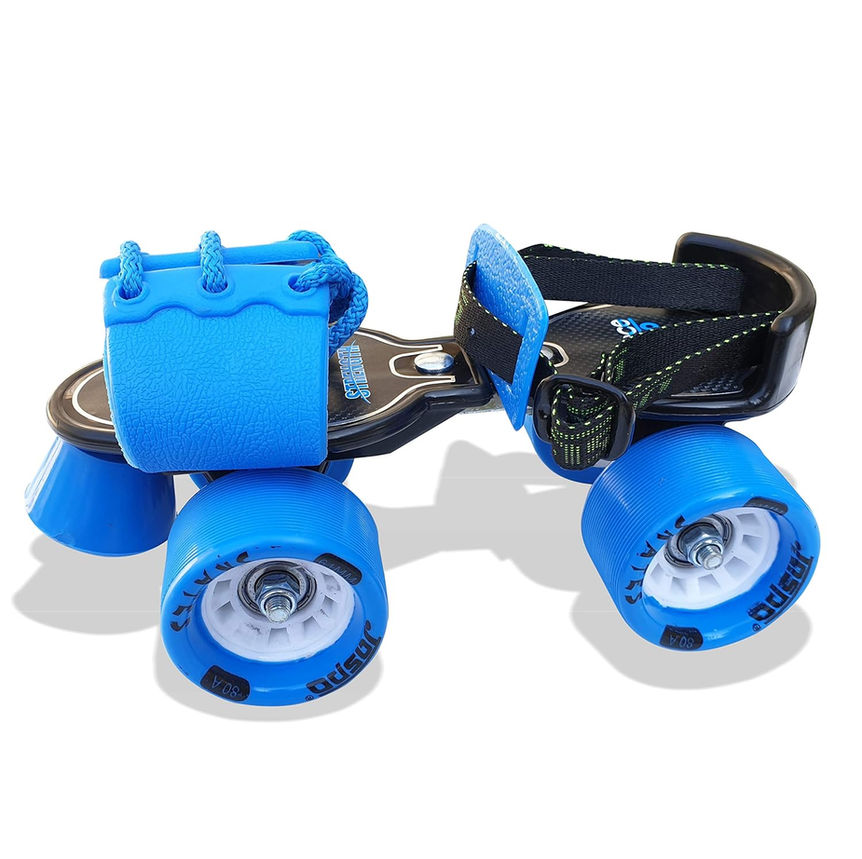 The Adjustable Skate is just the thing to easily glide indoors and outdoors. Discover the joy of skating with Jaspo, Indian Skate Company since 1960 SPECIAL FEATURES Adjustable and light weight senior roller skates with adjustable length from 21 cm to 27 cm Light weight fiber chassis and adjustable in size Weight Handling up to 70 kg. Toe Stopper for great control Fitted with Florescent TPU Wheels Suitable for age group 6-14 years