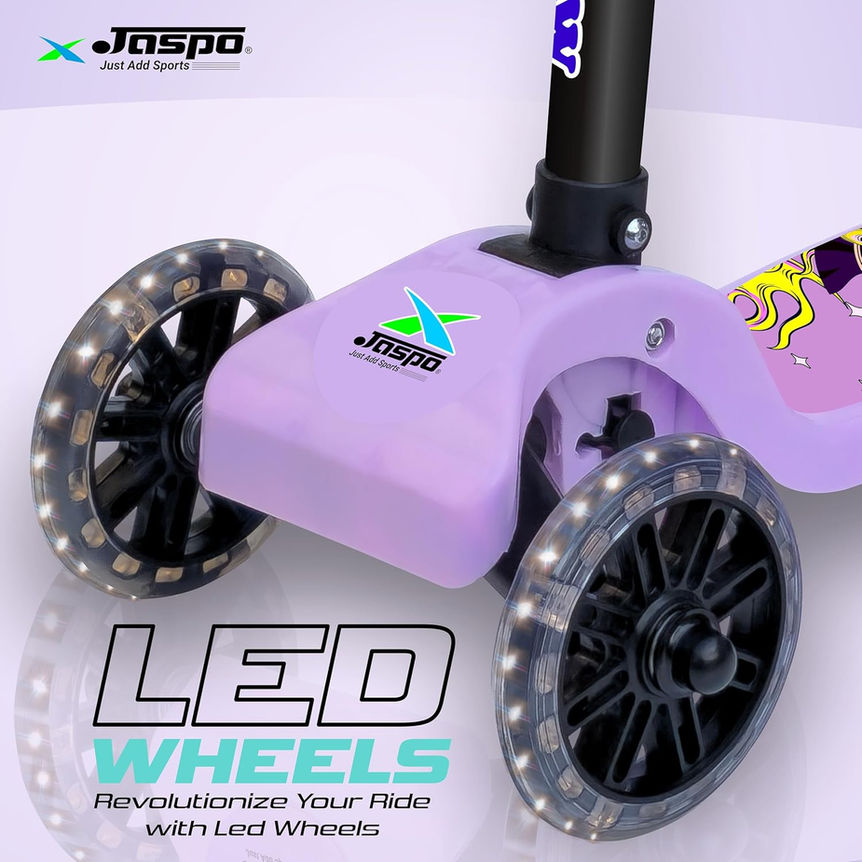 Jaspo Rainbow Kids Scooter Foldable, 3-Wheel, LED Wheels, Adjustable, 25kg Limit