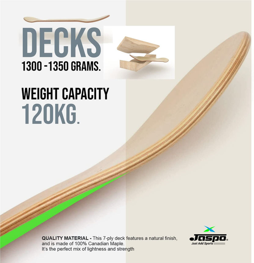 Sturdy & Durable: Freedom Spirit 31 "x 8" complete board is made of seven layers of Canadian maple. it can carry up to 100kg/220 LBS. 95A PU wheels, ABEC-9 bearings with alloy truck flexible enough to ride.Smooth & Steady: Smooth (95A) high rebound PU wheels with ABEC-9 precision bearings and 95A high rebound PU bushing, which can not only provide stable and strong grip while skating but also play a strong shock absorption effect.Better Control: Double-kick concave structure is easy to break. It is ideal for beginners & professionals to do basic stunts and tricks. Non-slip grip tape plays a very good anti-skid and smooth role, which is very good to ensure your safety and you can play your own control.STRONG & SMOOTH WHEELS ? Skateboard wheels are good quality made for an easy ride over any surface. Wheels are super soft 53mm 95A polyurethane wheels that give a noiseless riding experience.IN THE BOX CONTENTS: 1 SKATEBOARD WITH T-TOOL